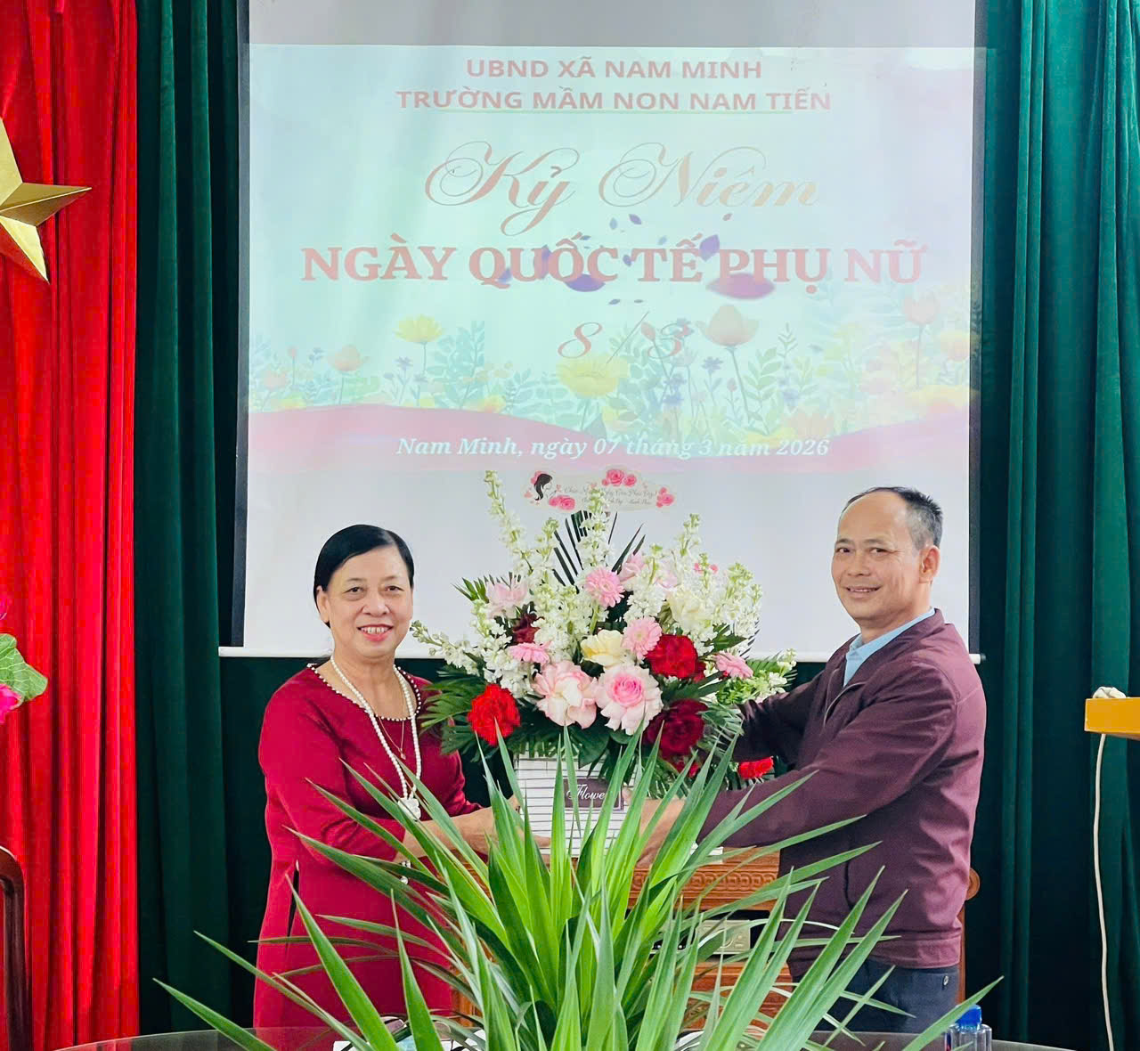 Nhân dịp Ngày Quốc tế Phụ nữ 8/3, trường mầm non Nam Tiến đã long trọng tổ chức buổi lễ kỷ niệm dành cho toàn thể cán bộ, giáo viên và nhân viên trong nhà trường. Buổi lễ diễn ra trong không khí vui tươi, ấm áp và tràn đầy ý nghĩa, thể hiện sự quan tâm của nhà trường đối với đội ngũ nữ cán bộ, giáo viên, nhân viên – những người luôn tận tụy, yêu nghề và hết lòng chăm sóc, giáo dục các em nhỏ.