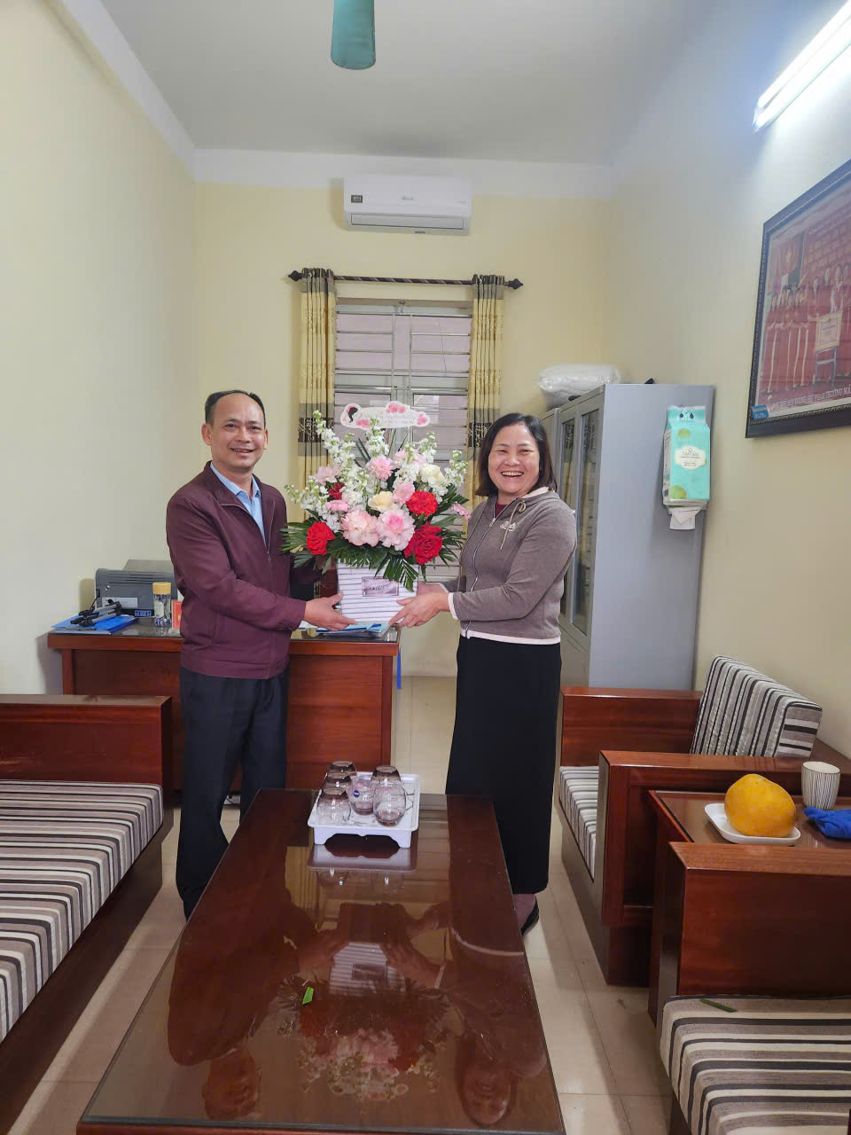 Tại buổi lễ, đại diện Ban giám hiệu đã gửi những lời chúc mừng tốt đẹp, ghi nhận và biểu dương những đóng góp quan trọng của các cô giáo và nhân viên nữ trong quá trình xây dựng và phát triển nhà trường. Những bó hoa tươi thắm cùng những lời chúc chân thành đã tạo nên bầu không khí thân mật, gắn kết giữa các thành viên trong tập thể sư phạm.